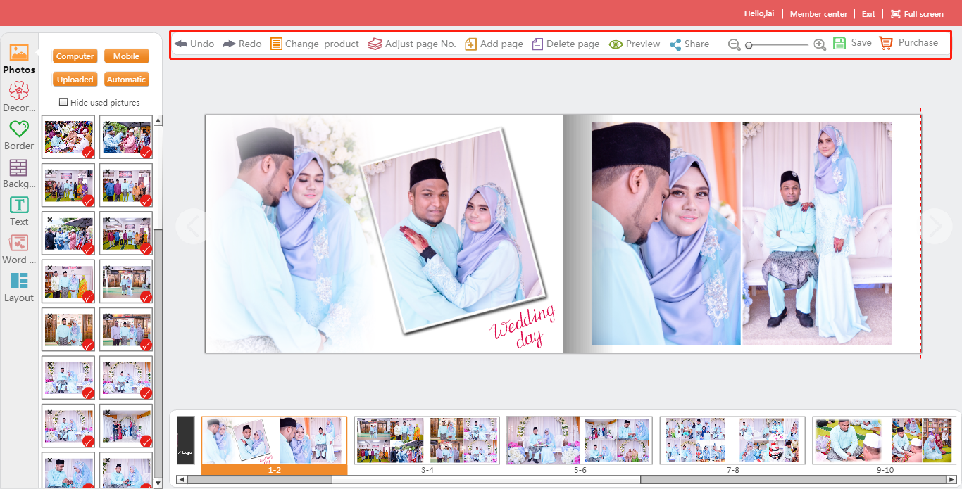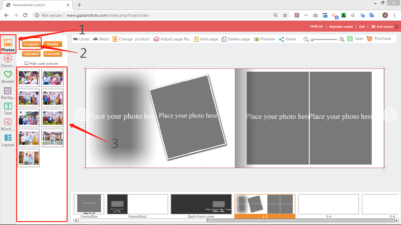 5) Click on the “Photos” button to import your photos from computer.