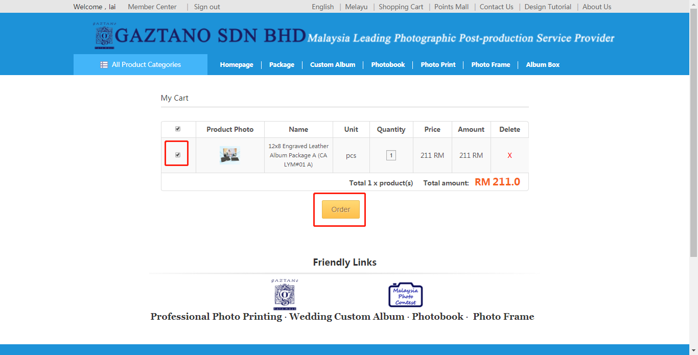 12) Select your work in shopping cart and click “Order” to make payment.