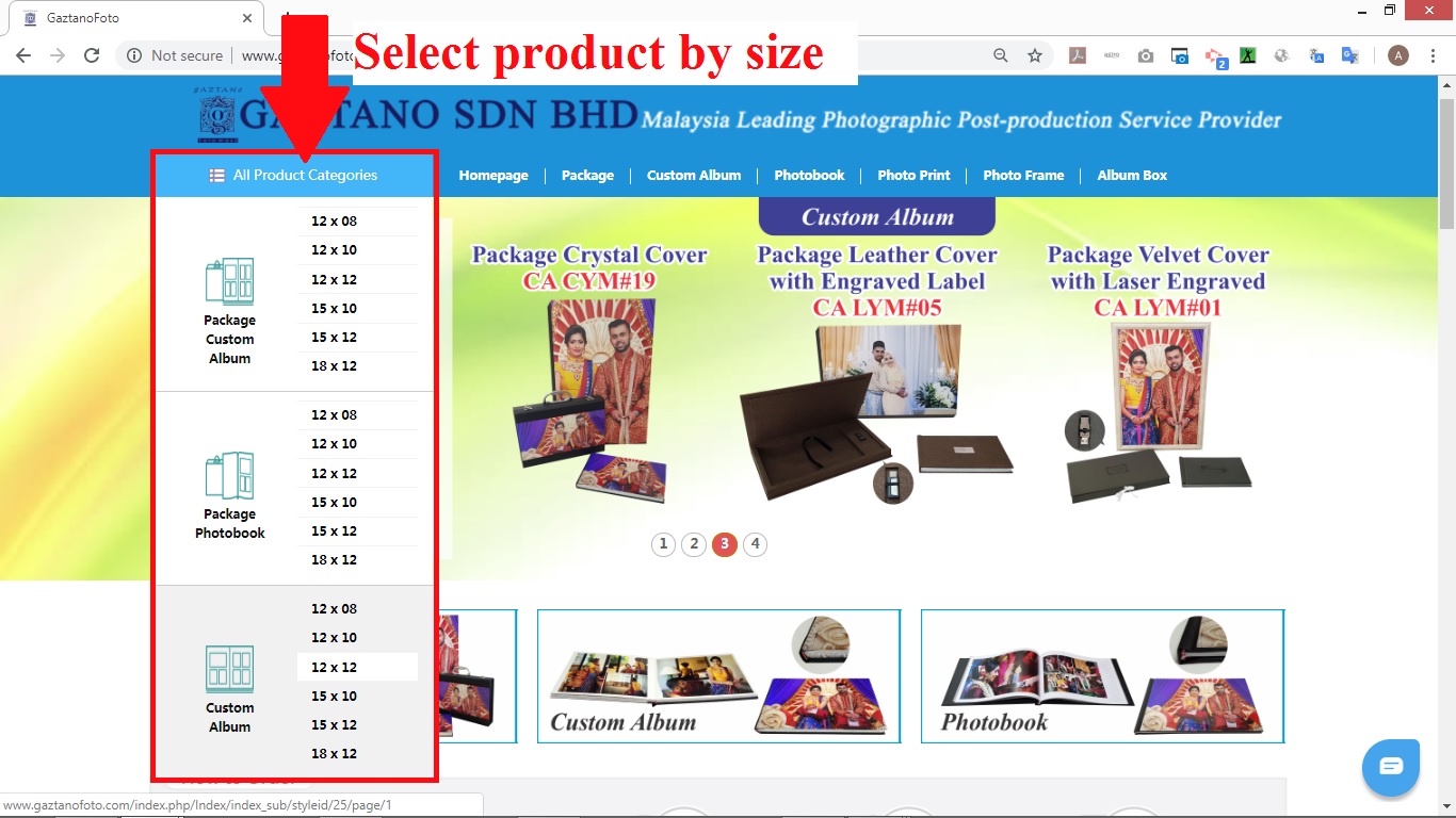 2) (A) Select your product by size in “All Product Categories” menu.