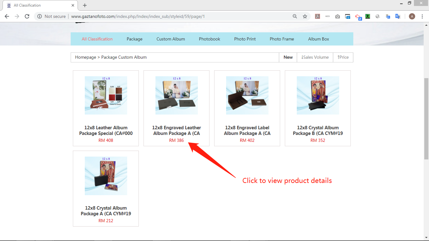 (B) Click on product photo to view product details.