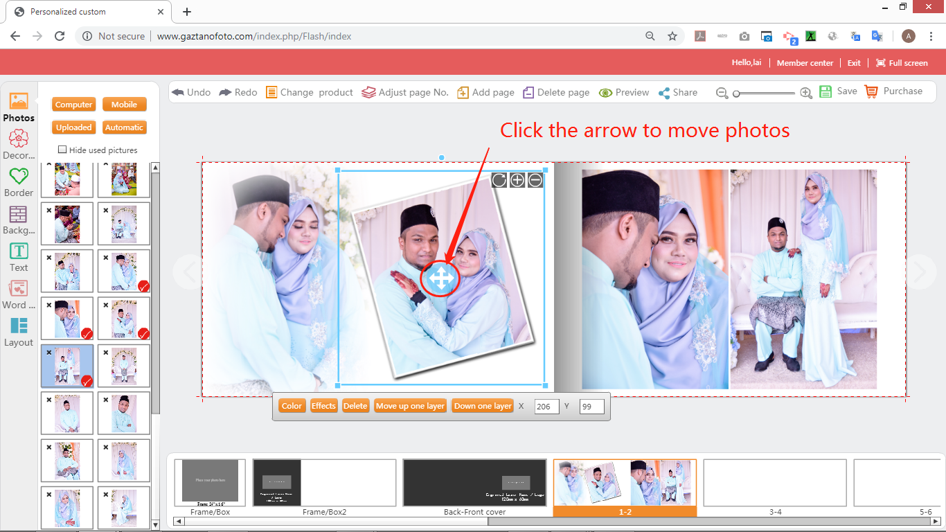 7) Click the arrow to move photo.